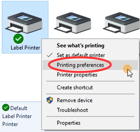 -> Right click on "Label Printer" -> choose "Printer Preferences" -> go to the "Option"