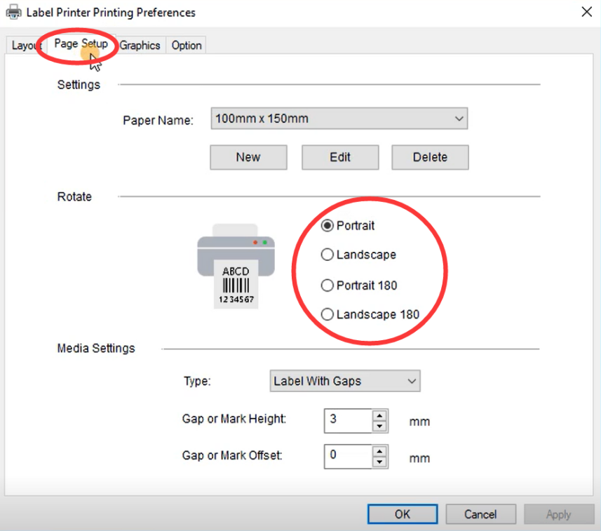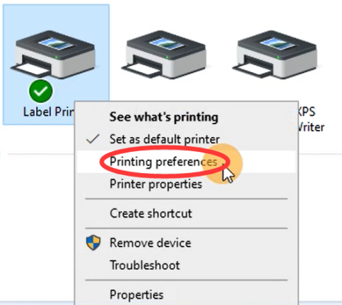-> Right click on "Label Printer" -> choose "Printer Preferences"