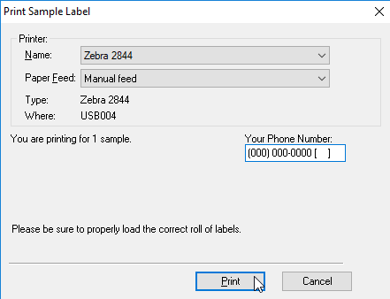- For your printer, please pick Zebra 2844 and click "Print"