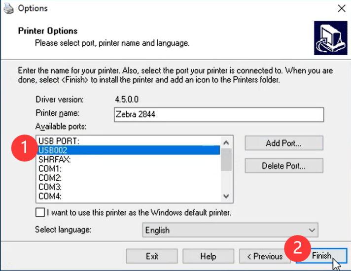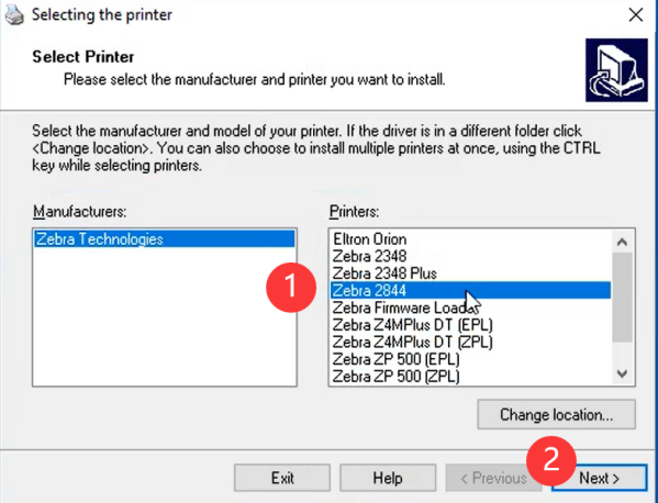 - Select Zebra 2844 and click "Next"