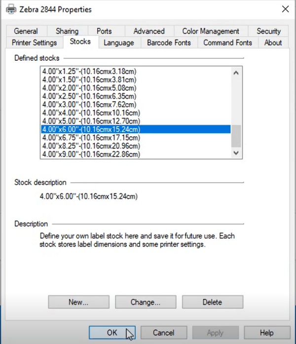 - Go to "Stocks" to choose the label size