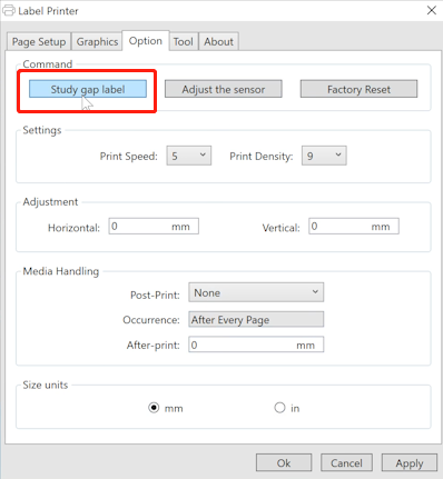 18. Load label to your label, then click "Study gap label" to let your printer learn the gap label.
