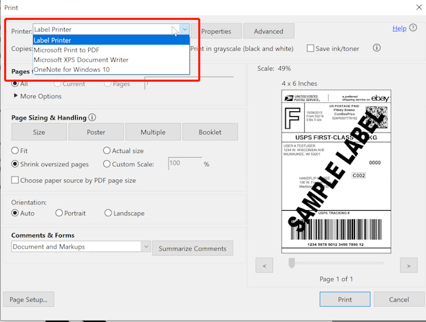 8. Select the paper type: Right click on Label Printer -> Printing preferences.